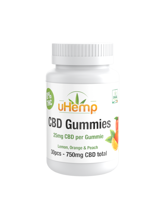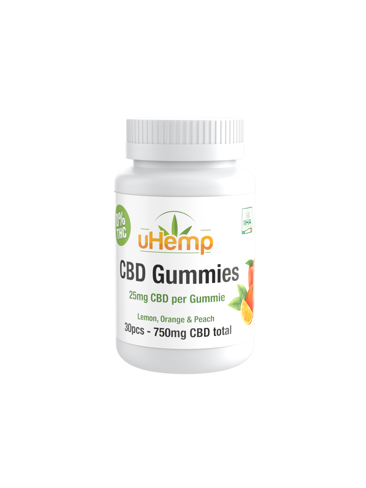 uHemp CBD 30pcs Gummies Lemon,Orange,Peach, 750mg CBD